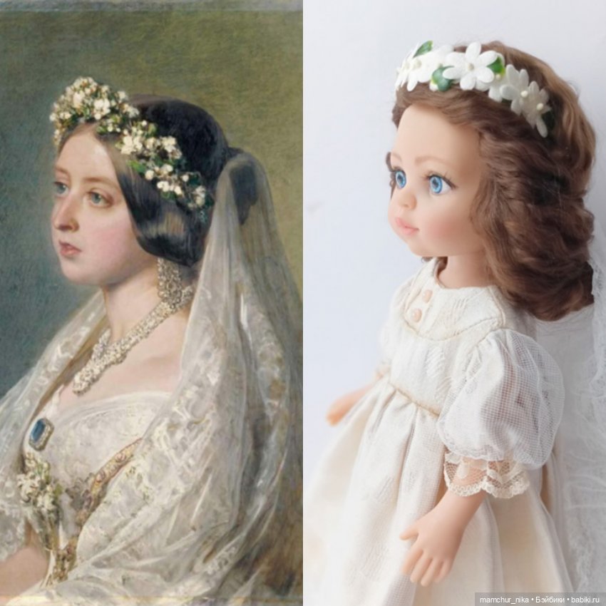 Сегодня я расскажу, вернее напомню Вам о Королеве Виктории, в честь которой была названа одна из «разновидностей» Чайна долл. Именно та, с гладкой прической и открытым ушком, похожая на портрет молодой Виктории в свадебном наряде.