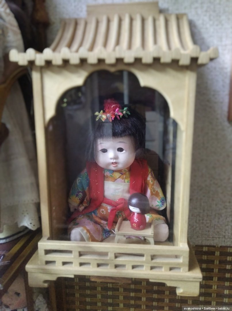 Японские куклы Ичимацу. Гофун в многослойном кимоно с абстрактным дизайном. Начало- середина 1900х. 43см. US$950На этом я заканчиваю своё фото- повествование о коллекции Югетт Кларк, поскольку мой интерес в основном фокусировался на показанных антикварных куклах, добавив лишь, что коллекция Югетт также включала немалое количество блюэттов (bluette), кукол Мадам Александр, а также японских и просто кукольных домиков (фото и информацию о них можно посмотреть в каталогах Therialt).
