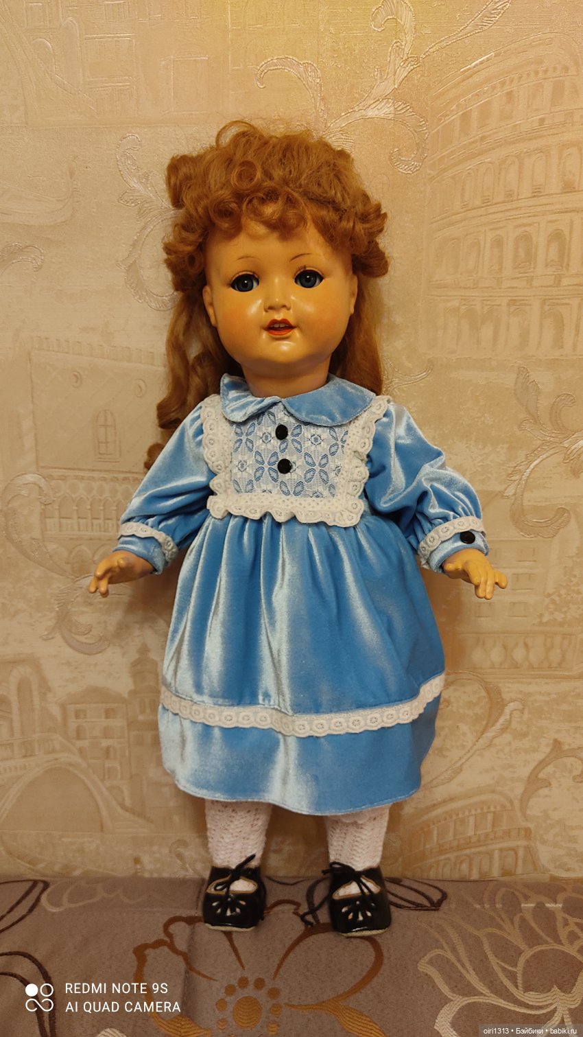 А сей час после реставрации куколка ожила, мастер ей сделала новый парик, похожий на ее оригинальный. Сшили ей новое платье.