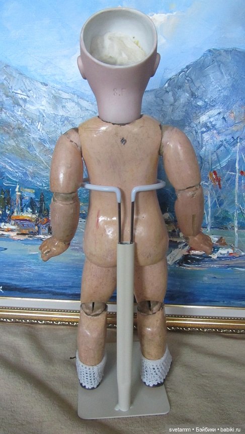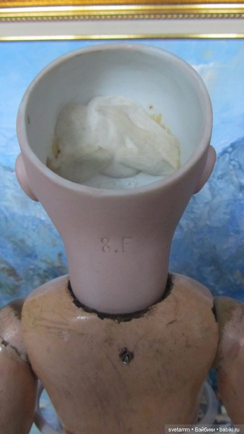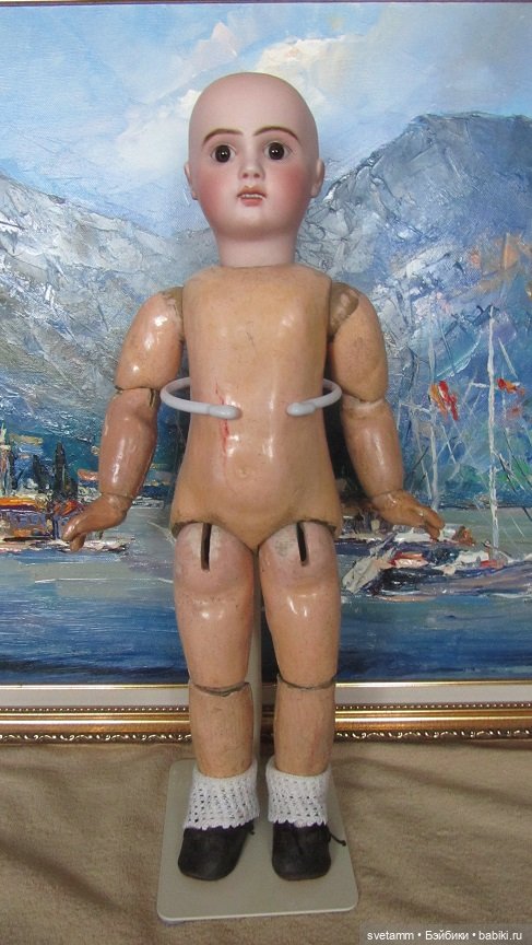 Куколка 47см ростом, на французском крепеньком теле без маркировки, на головушке маркировка 8.F, скошенный затылок без ободочка, пять красивых зубиков.