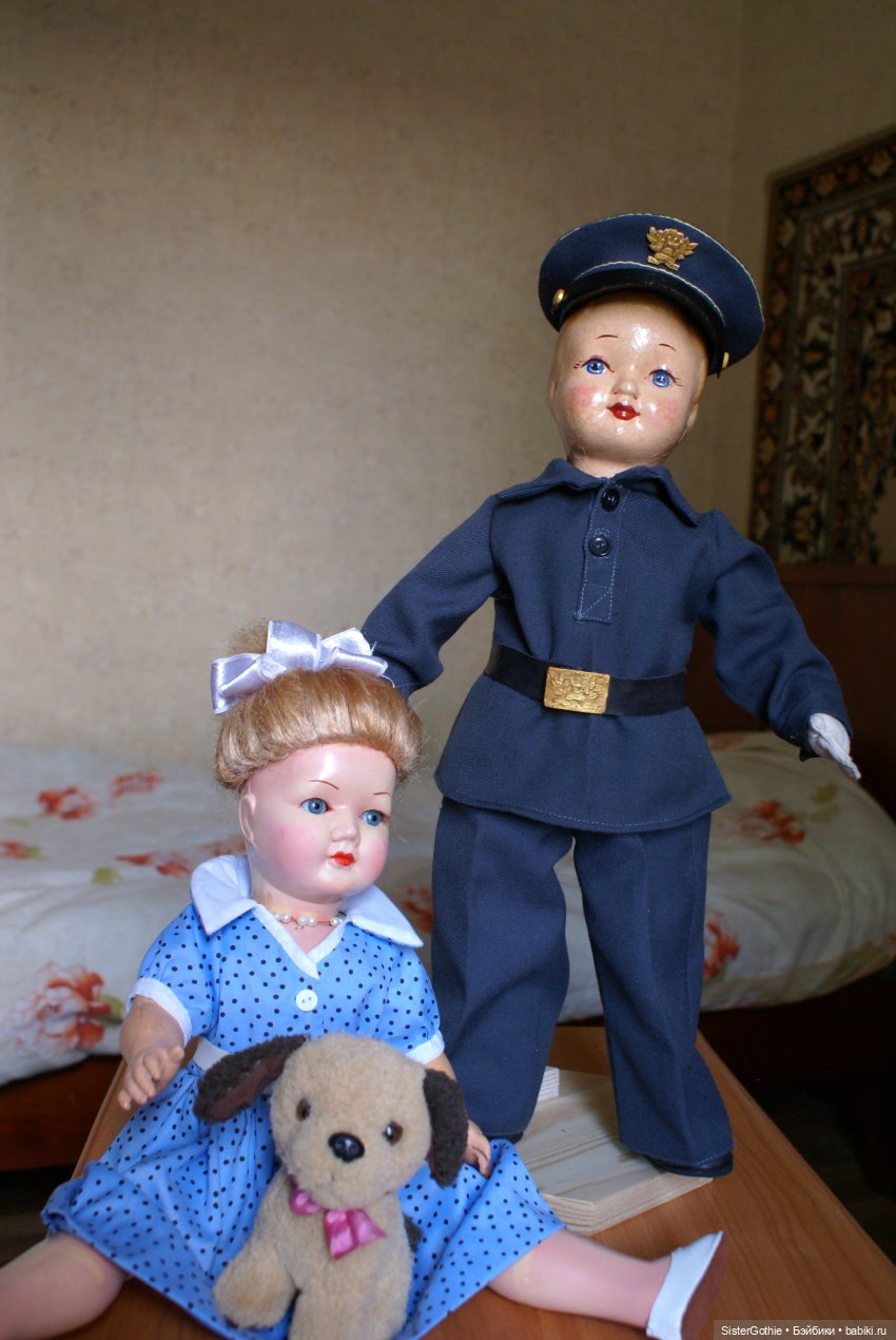 Труселя, носки, ботинки… Фуражку сшила из остатков, еле хватило… Козырек из склеенного картона, покрыт лаком.Вот такая история… Везет мне на мальчиков. Недавно прикупилась еще одна голова, и тоже, возможно, мальчик.