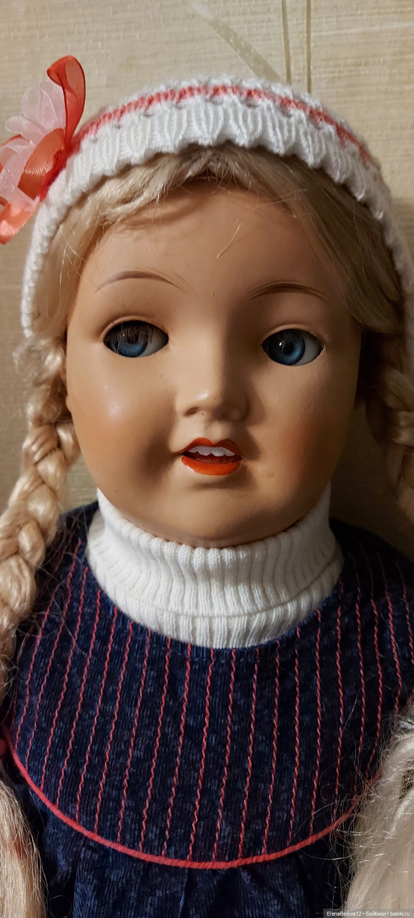 Добрый день. Большая просьба помочь определить производителя куклы. Судя по лицу, это 50-е годы. Большая, 70 см. Глаза не только моргают, но и поворачиваются вправо-влево. Можно ответить и в телеграм