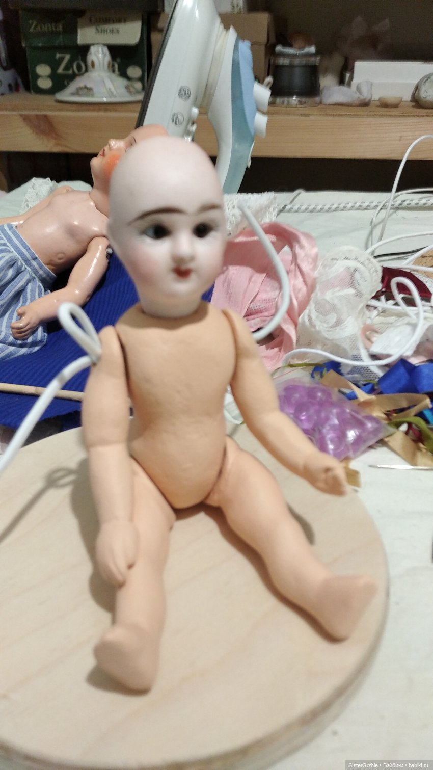 Хочу показать маленькую куколку. Тело сделано нами из дерева по образцу антикварного. Первые 2 фото — образец антикварного тела.