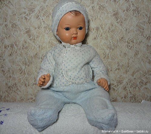 Мой Игорек в гости. Его мне подарили в 1963 году. Я его выносила во двор играть и все подружки просили его на ручках подержать. Я была счастлива ужасно, что у меня такой малыш есть. Глазки у него уже не закрываются, это я его в детстве мыла, хотя мне сто раз объясняли, что этого делать нельзя, но я, когда никто не видит, его в раковине мыла. Одежка родная сохранилась, хотя уже ветхая стала. Ой, ему в этом году 60 лет исполнилось, через 5 лет на пенсию 😅.