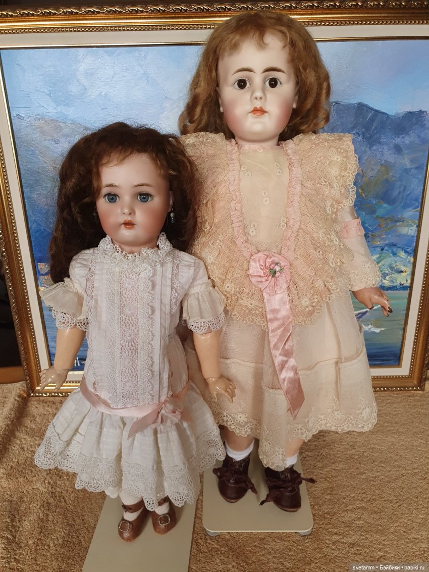 Оказывается, своих больших антикварных девочек, я здесь ни разу не показала… Их у меня две, по 50-60 см. каждая. Куплены по внезапно возникшей большой любви. Хочу, чтоб остались потом в наследство детям.