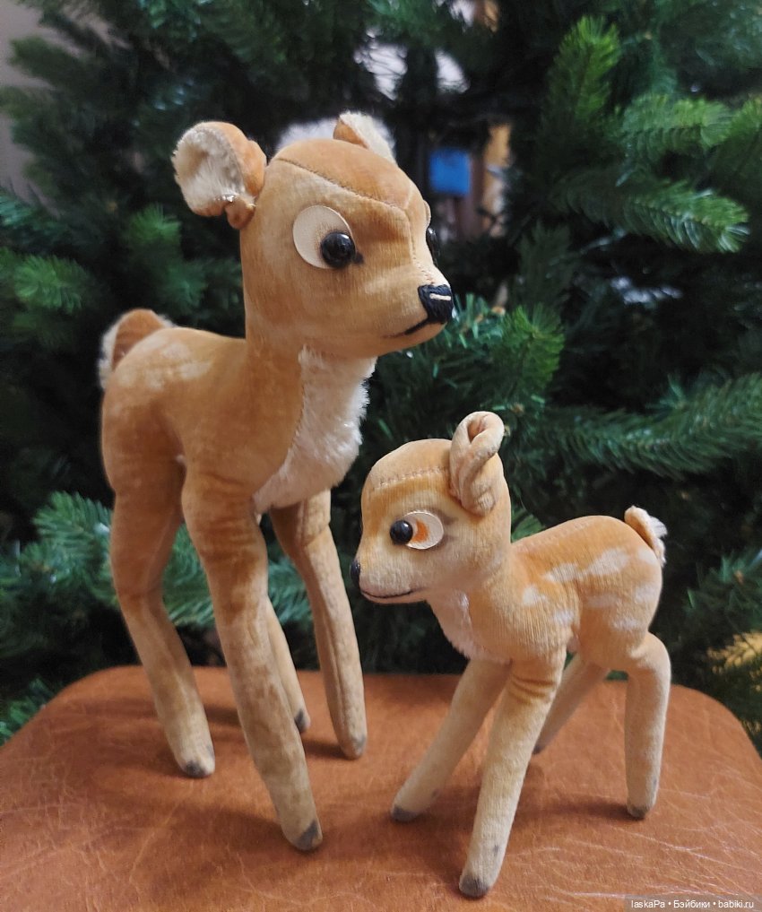 Эти оленята восхитили удивили меня тем, что сшиты не из привычного мохера, а из бархата. Вот и не смогла «пройти мимо». В каталоге нашла, что это Бемби.
