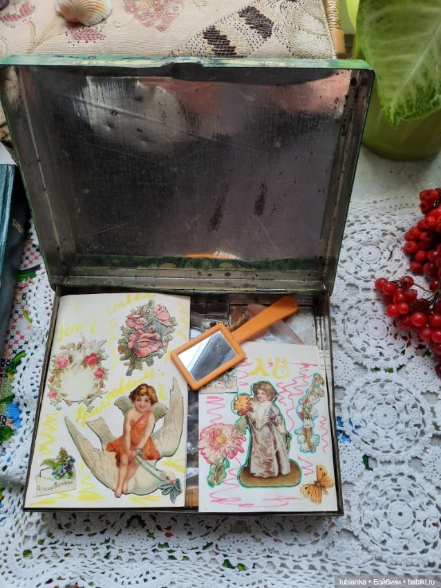 Всем хорошего настроения🌞поздравительными открыточками, которые доча дарила мне на всякие праздники.Шли годы… Доча выросла, альбом за ненадобностью перекочевал на дачу в библиотеку и спокойно отживал тут… Весной моя подруга(по куклам)из Керчи стала увлекаться картонажными старинными куклами и тут-то я и вспомнила про этот альбом.Тоже по-варварски выдрала ей несколько дам и кавалеров, отправила по адресу(даже не сфотографировав их), она осталась довольна, я тоже-надо спешить делать добро🤗