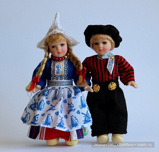 А какая у вас чудесная парочка голландцев — я обожаю таких куколок в национальных костюмах, а голландский костюм один из самых ярких и колоритных, не в последнюю очередь за счет присущих только голландскому национальному наряду деревянных башмаков — кломпов.