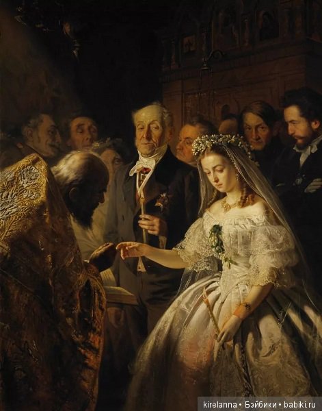 И добавлю в копилку картинок венок из флёрдоранжа на невесте с картины «Неравный брак»