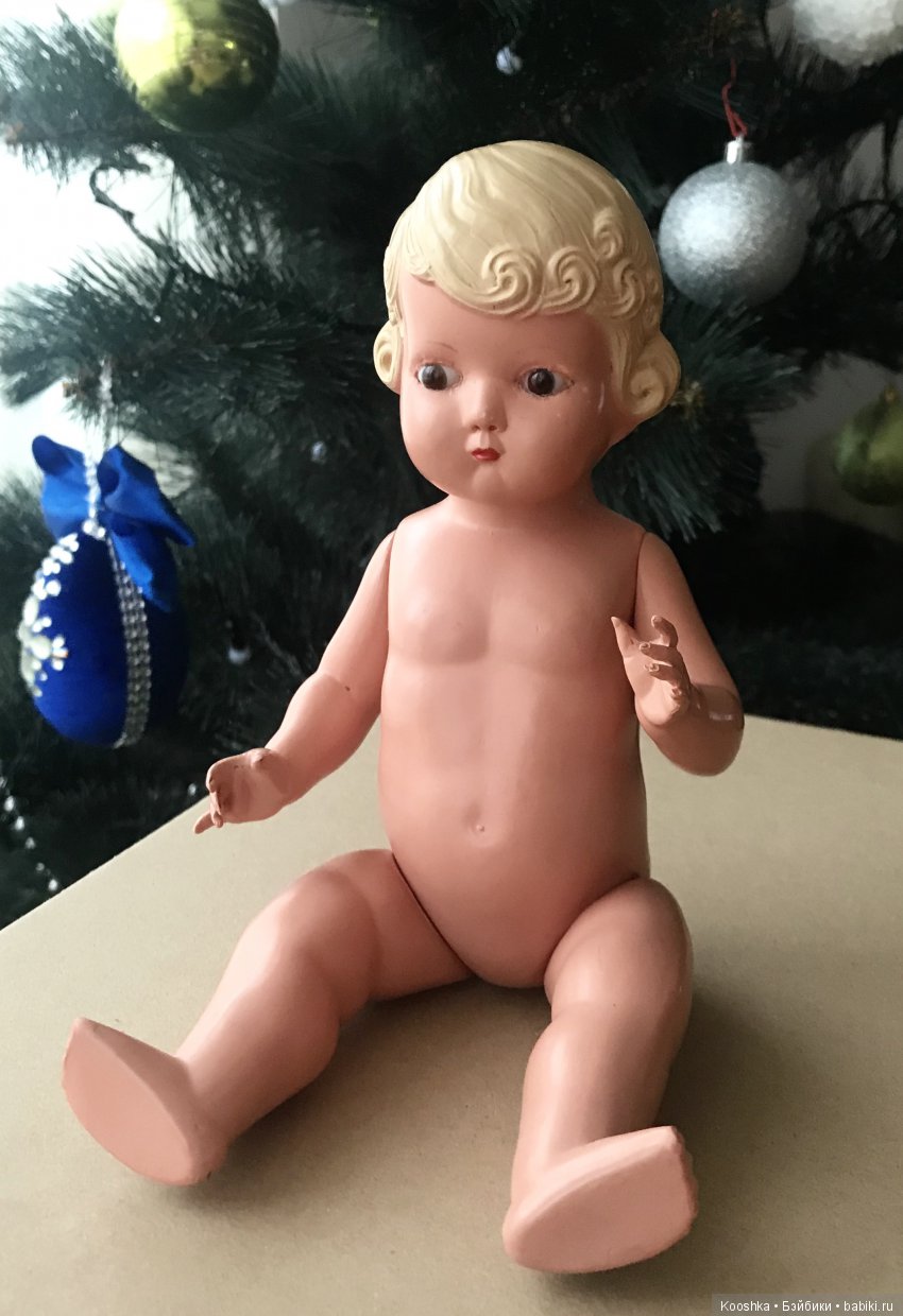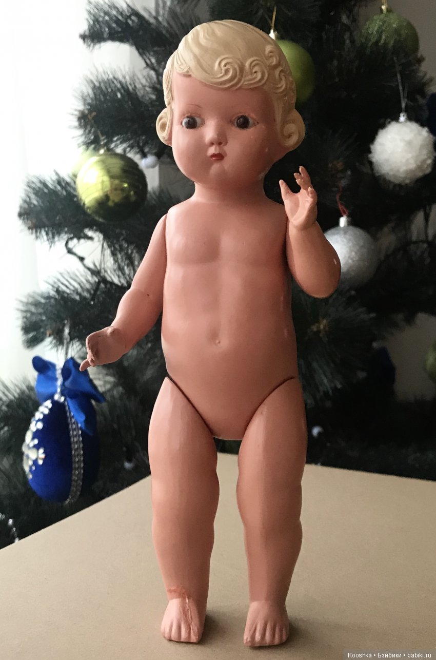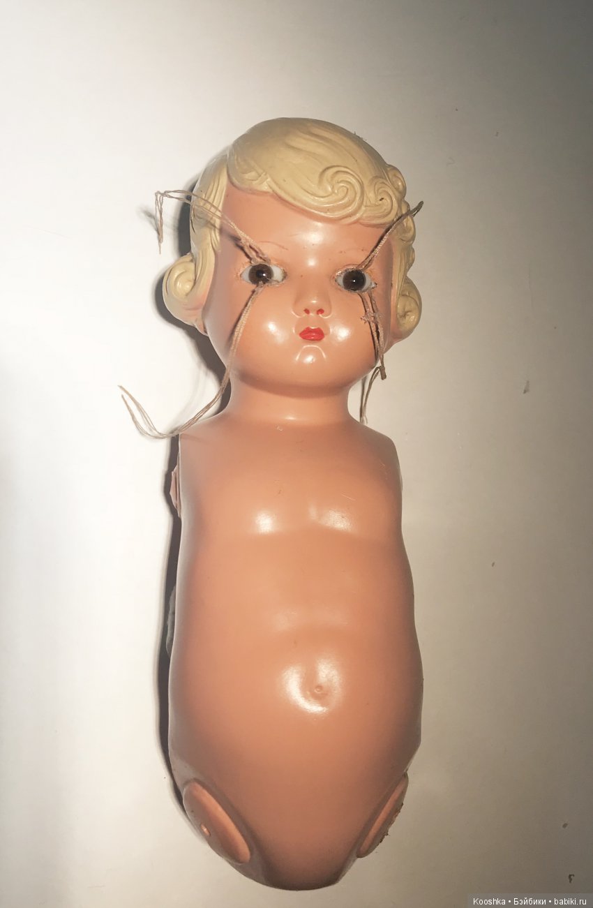 Здравствуйте форумчане! Появилась у меня целлулоидная малышка с проблемами. Голова цельнолитая, внутри стеклянный глазик. Как достать и закрепить? И ещё нужен совет по перетяжке. Отверстие крохотное. Нагреть и пропихнуть узелок резинки? Или другие варианты? Может кто-то опознаёт, клеймо размытое. Рост 25 см. Буду благодарна за помощь