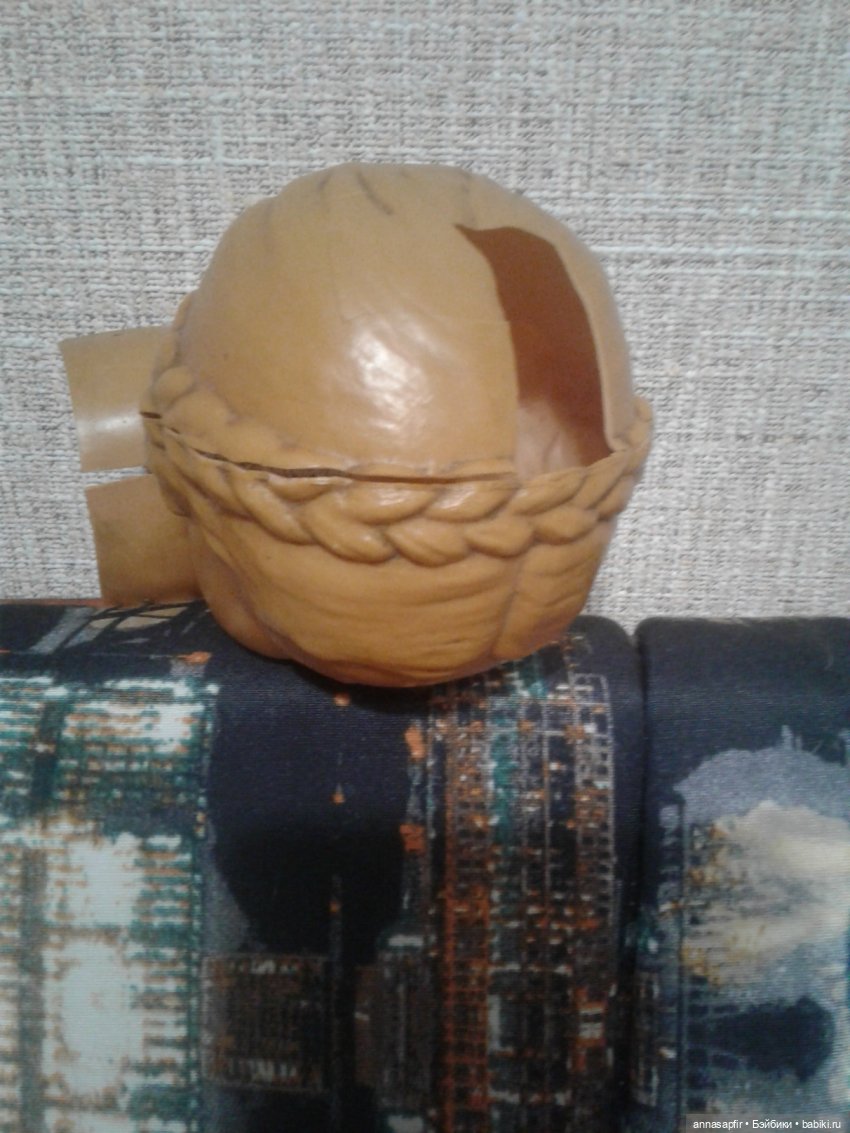 Протрите голову, что бы было как можно меньше пыли. Если целлулоид у Вас ломкий, пересушенный на солнце, пойдут трещины. Что бы этого избежать с внутренней стороны промажьте голову размякшим целлулоидом.