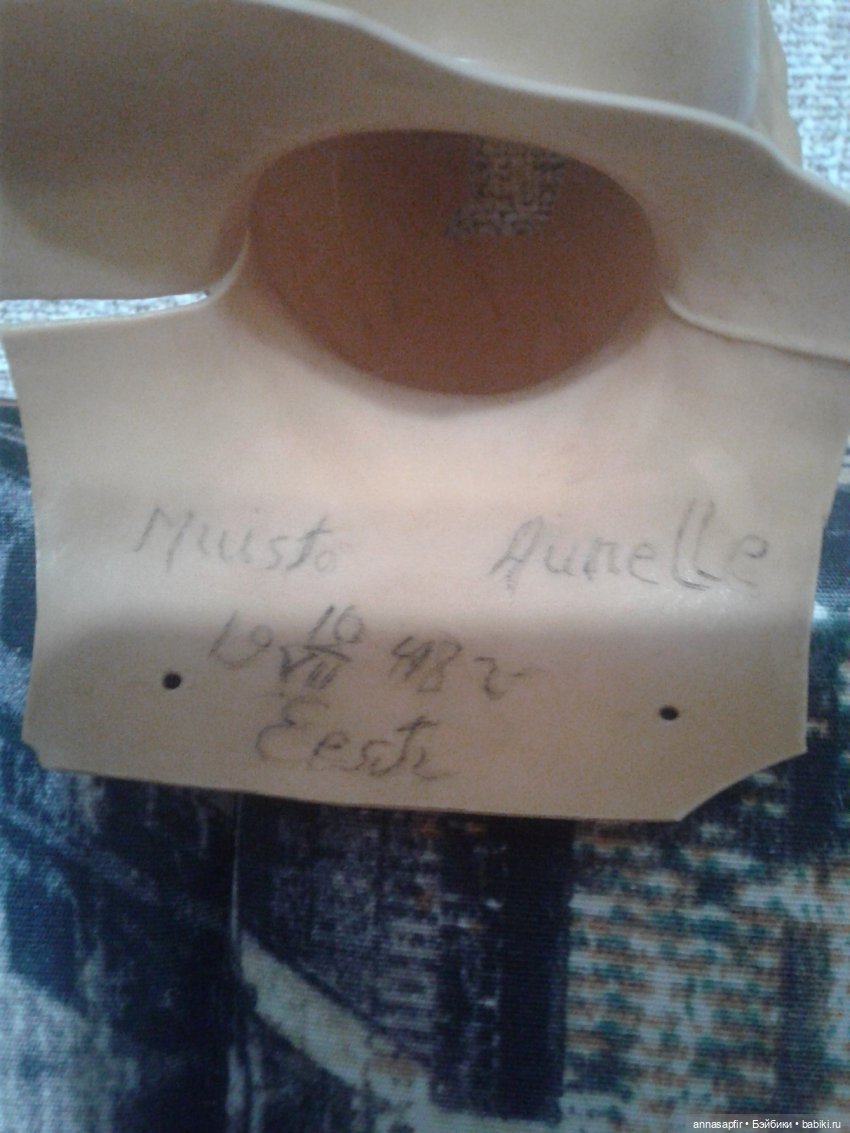 Вот надпись внутри бюстика. Владелица очень им дорожила, память о подруге, но так как он стал рассыпаться, то предпочла отдать его мне. У меня будет сохраннее. И еще такое совпадение, нас обоих зовут Анна. :)))