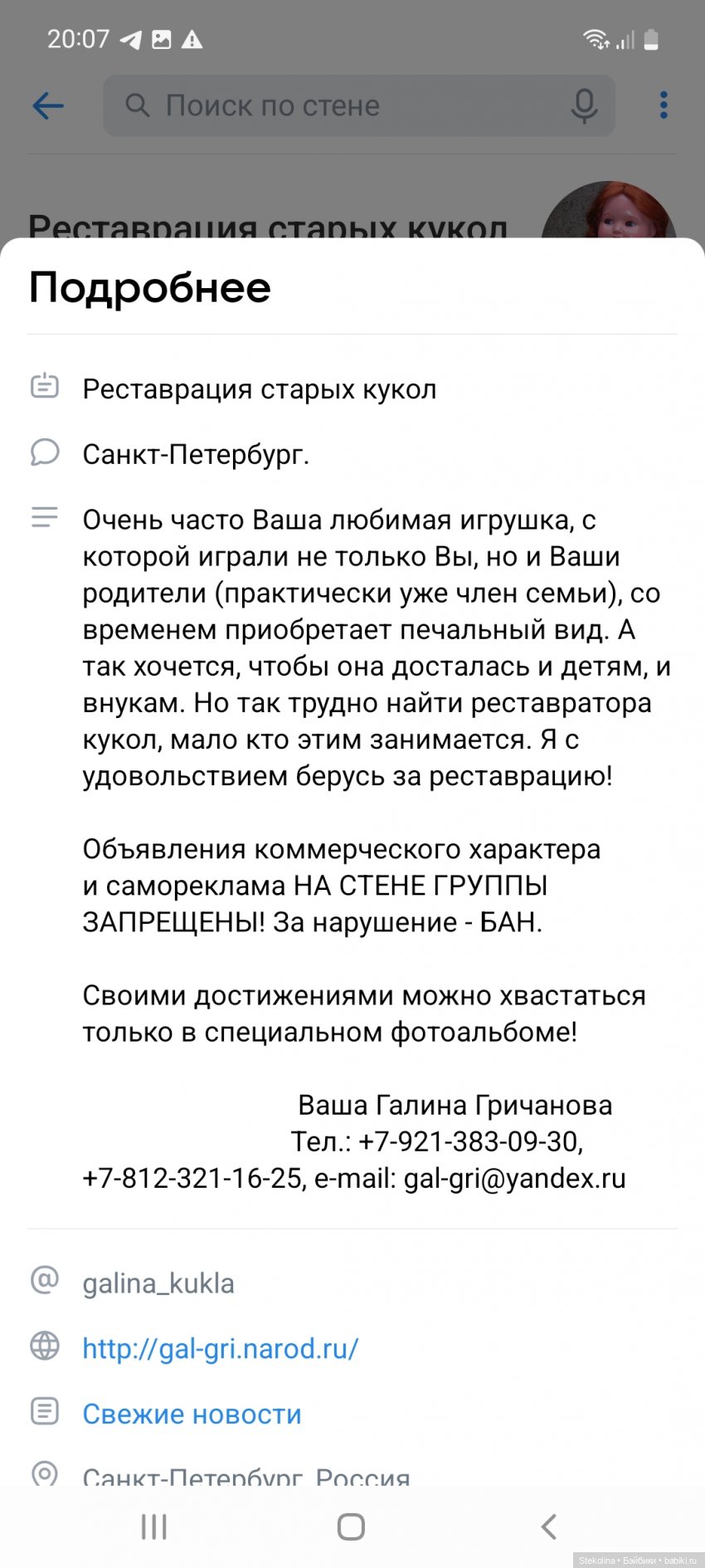 Добрый вечер! Девочки, помогите, пожалуйста! Буду Вам очень благодарна, если подскажите мастера в Санкт-Петербурге по антикварным куклам, кто смог бы починить рокер и глазик. При перевозке у куколки рокер отвалился и глазик у основания лопнул. Боюсь, что куколка еще одной поездки не вынесет. С уважением, Елена