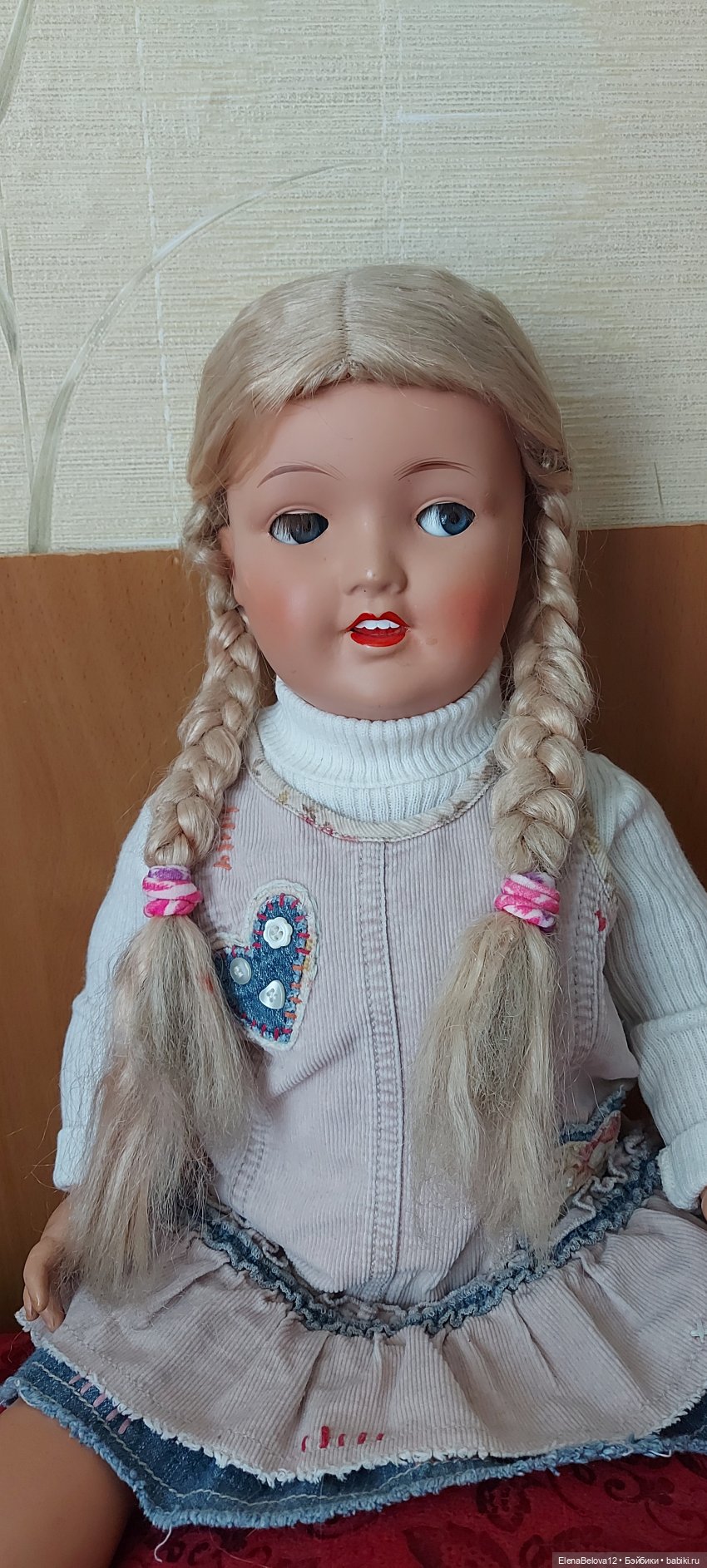 Вот такая у меня находка. Понимаю, что не менее 50 лет. Хочется привести в порядок, оставив все родное, ведь практически все цело. Прошу совета! Как правильно помыть, расчесать? Как и из чего лучше сделать зубы (судя по пустоте полости рта, они были)? И что в целом можете сказать об этой куколке?