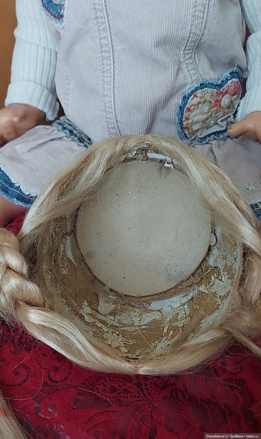 Я думаю вам лучше подобрать ей подходящий мохеровый антик парик если подвернется случай купить по адекватной цене… Хотя это сложно ((((( уж больно дорого их продают отдельно((( иной раз по цене целой куклы( увы.