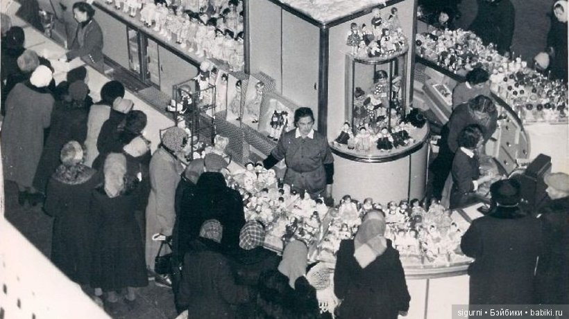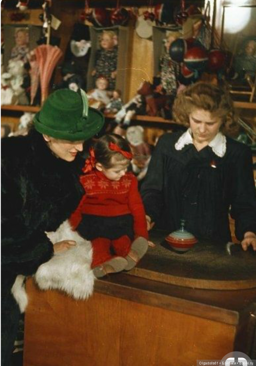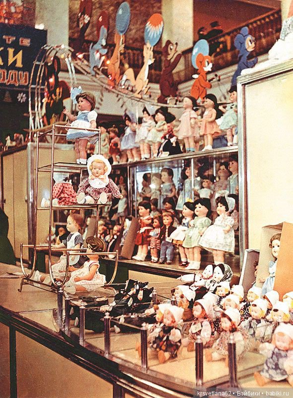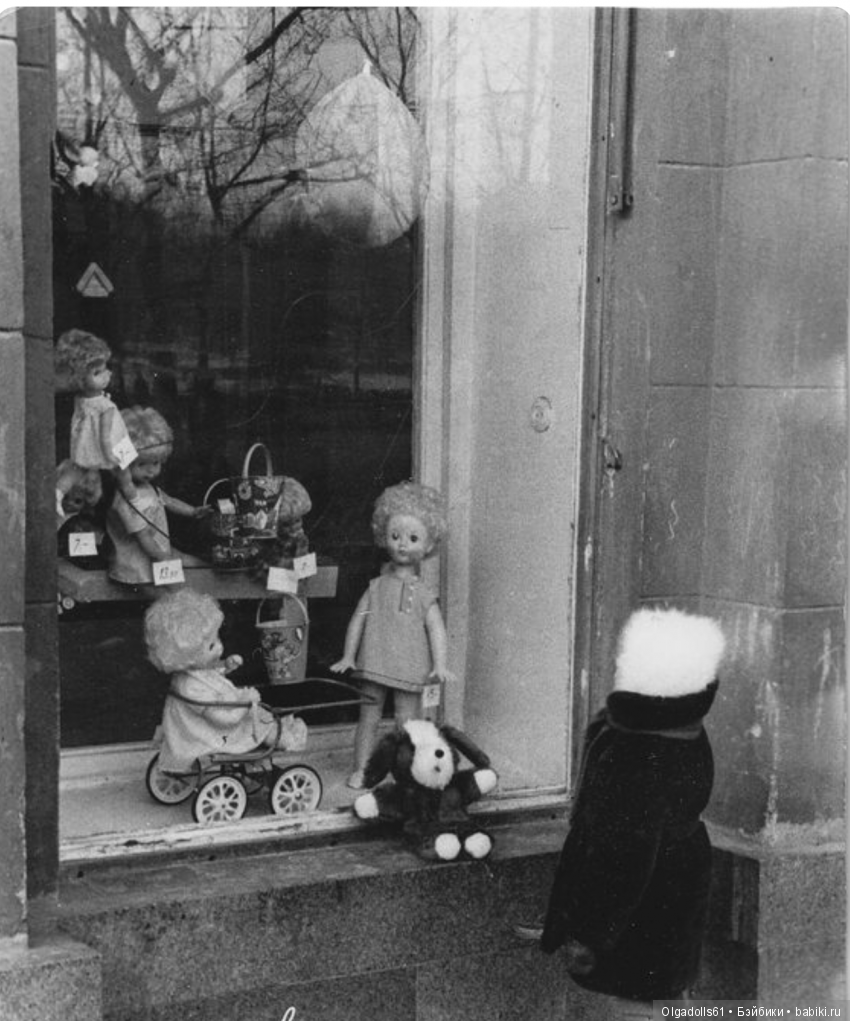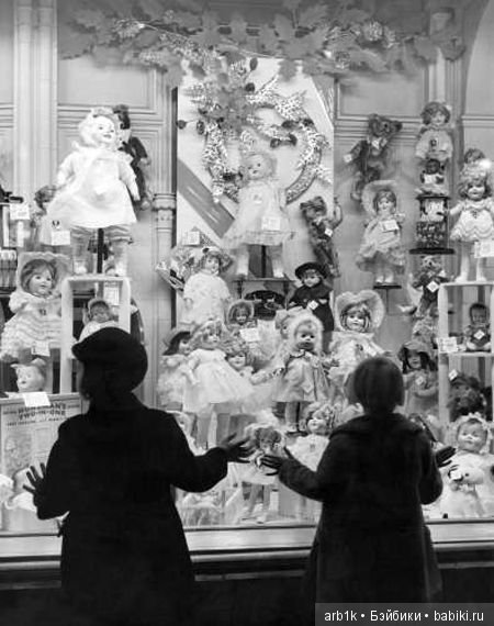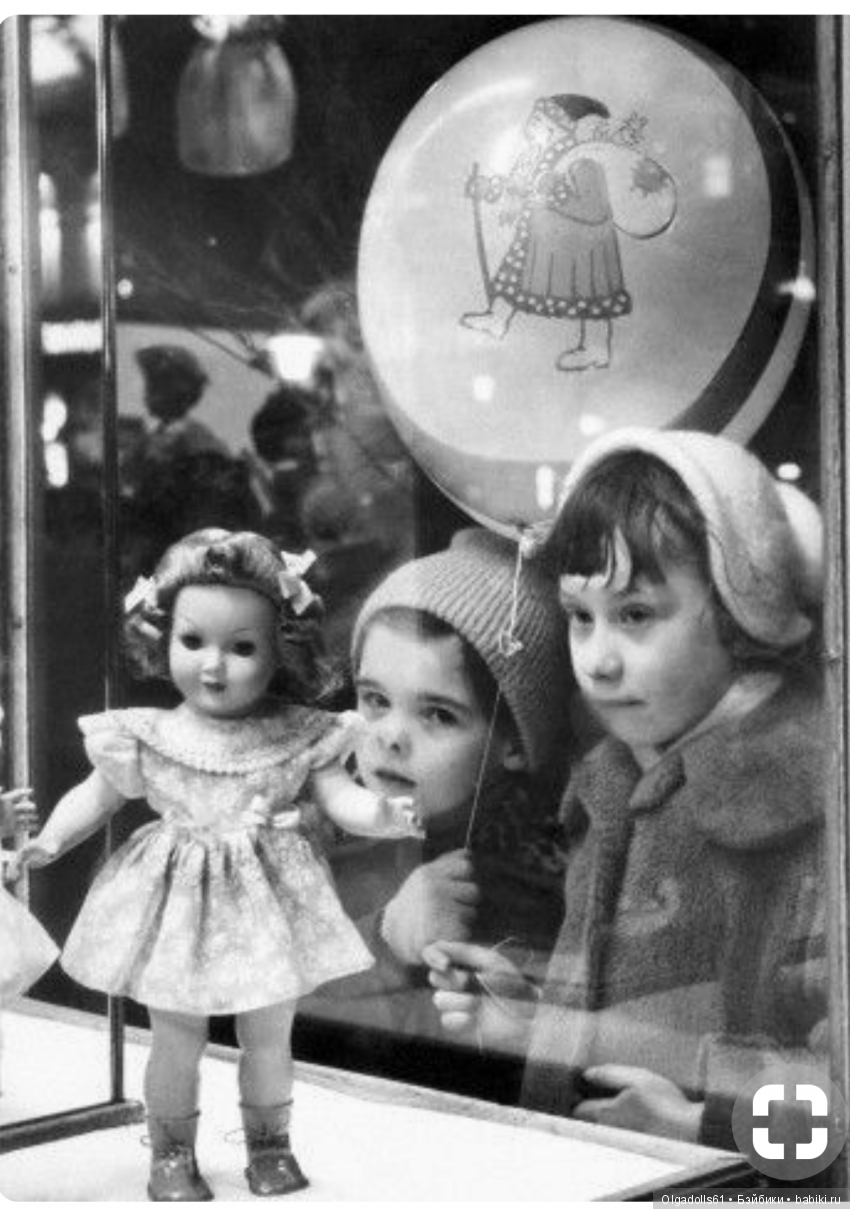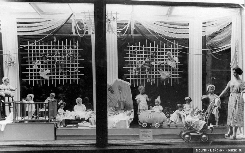 К сожалению, больше фото не нашла, кадры из фильма «Подкидыш» 1939 год, интересно, что за кукла? В фильме Р. Плятт стоит у шикарной витрины с куклами, некоторые качаются на качелях.