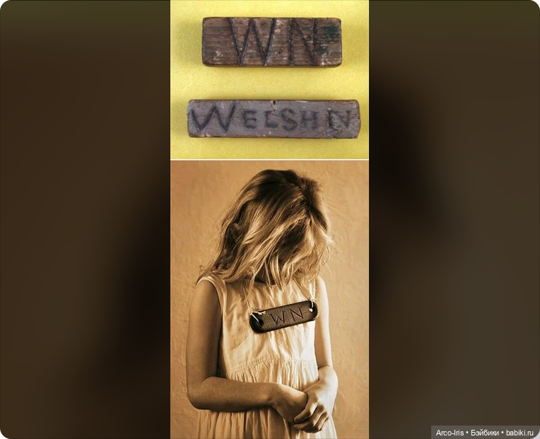 А еще было вот такое наказание. С 1847 по 20 годы прошлого века в валлийских школах детям вешали на шею деревянную «доску позора» и ребенок должен был ходить с ней целый день, а после учебного дня учителю разрешалось физически наказать этого ребенка. Чем дети заслужили такое отношение? Так их наказывали, если они говорили по-валлийски в школе, неважно, на уроке или на перемене. Это было запрещено. Английский закон 1847 года официально утверждал что валлийский язык — «помеха цивилизации» и «экономическому прогрессу». Несчастный ребенок, попавшийся на неподчинении закону, подвергался публичному унижению. Ему вешали на шею доску c надписью Welsh Not и заставляли повторять: «я дурак, я не могу выучить английский». Хуже всего, что поощрялось доносительство — если наказанный ребенок услышал кого-то еще, говорящего на родном языке, и указал на него — «доску позора» снимали.