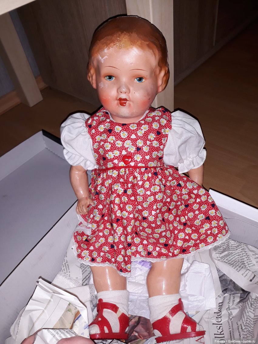 Следы прожитой жизни должны быть, это свидетельсва любви.На то она и кукла, радость приносить.До нас любили, играли, чинили и нам хватит)).