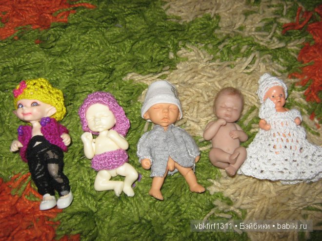 И хотелось еще показать некоторых своих лилипутиков-малышек-пупсиков.Они всего по 7 см.Рождественские малыши Маруся и Марек, авторский мальчишечка Натальи Погребной, реалик Пупу, которую я называю Милька и антикварный немецкий фарфоровый пупсик
