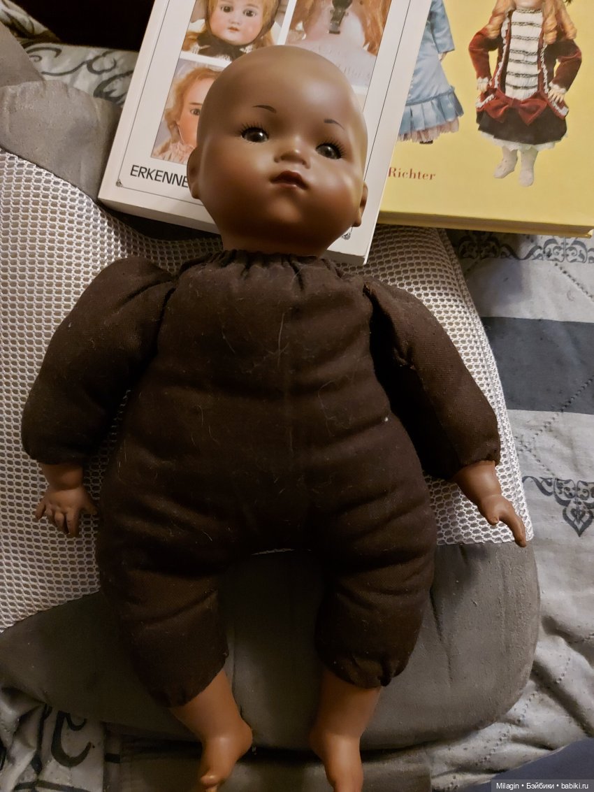 Добрый день, уважаемые жители форума. Буду благодарна, если посмотрите старенького малыша и подскажете, что с ним делать. История вот какая.Увидела я в этого малыша в магазине у своей подруги. В основном они занимаются книгами, но иногда берут на продажу посуду и другие винтажные вещи, поэтому я туда регулярно заглядываю в поисках кукол.