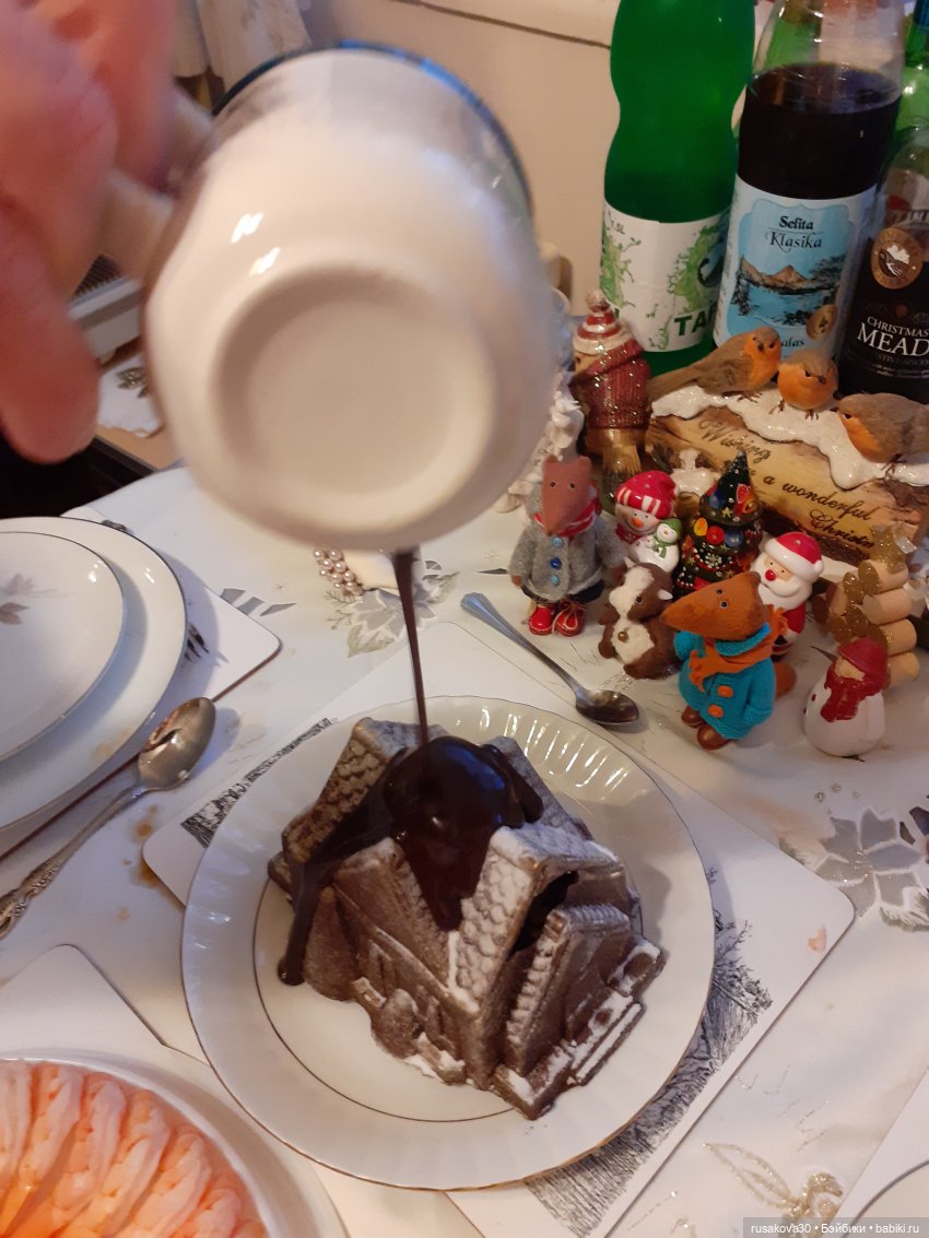 Шоколадный домик поразил. А он и должен был расстаять? Фото с соусом из трубы — бесподобно выглядит)))