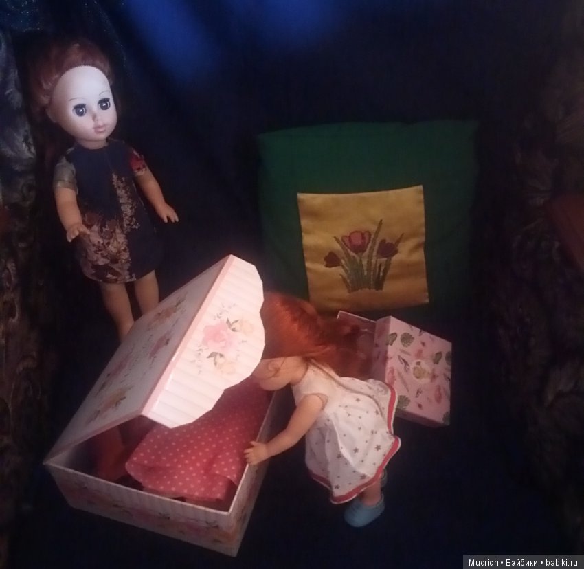 Точно! Надо завести еще одну коробку, побольше, чтлб декорации помещались! И купить взрослую команду. А то смотрю на чужих барбеек, а даже в гости привести некого.Они не дорогие, их можно семьями селить