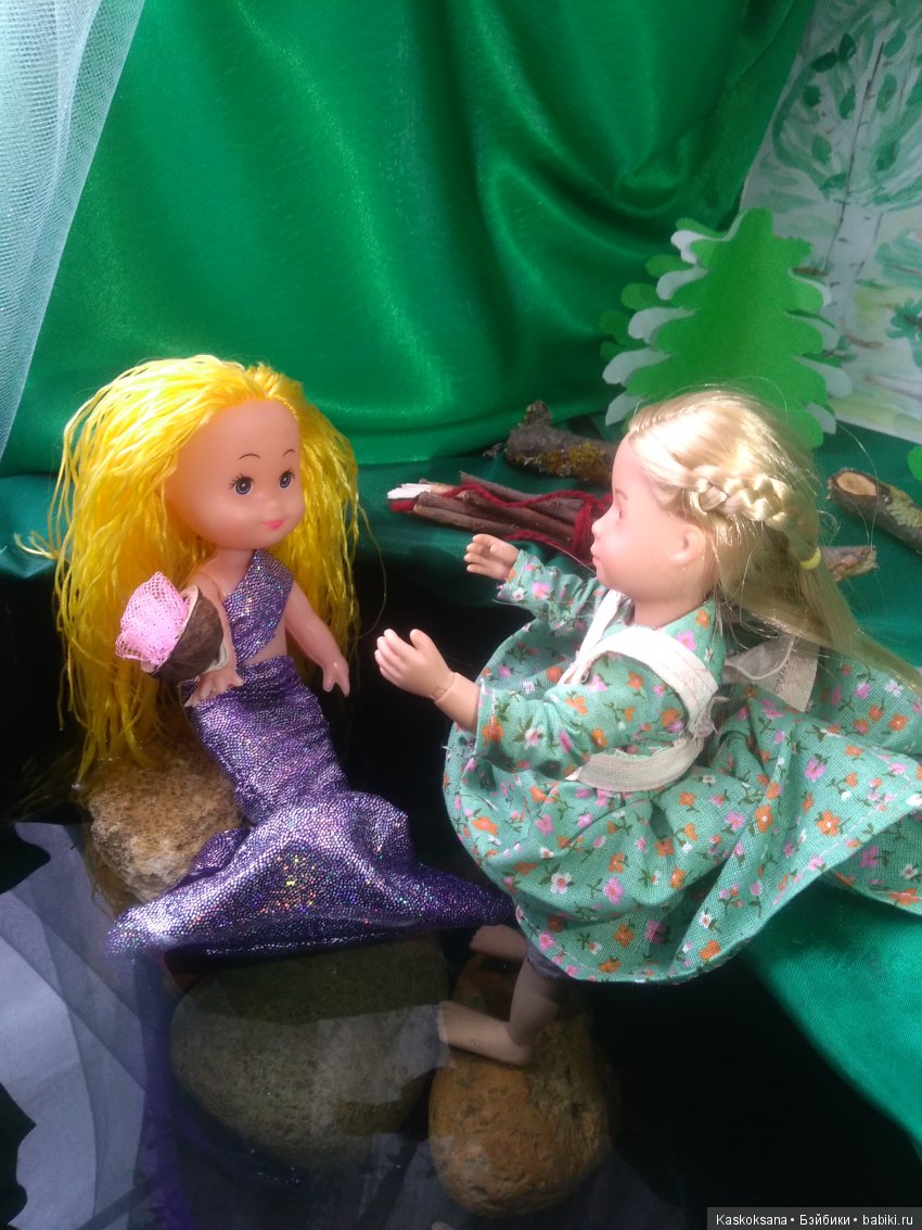 Нагнувшись к воде, чтобы умыться, уставшая Золушка роняет один из орешков в воду. Она плачет. Из воды появляется Русалка и рассказывает Золушке, что в воде орешки становятся волшебными. В каждом из них находится платье небывалой красоты.
