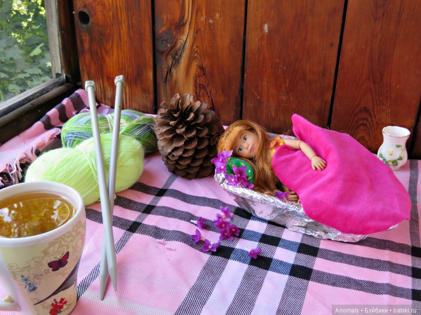 Колыбельку для Дюймовочки сделали из блестящей лакированной скорлупки грецкого ореха. Вместо перинки туда положили несколько фиалок, а вместо одеяльца — лепесток розы.