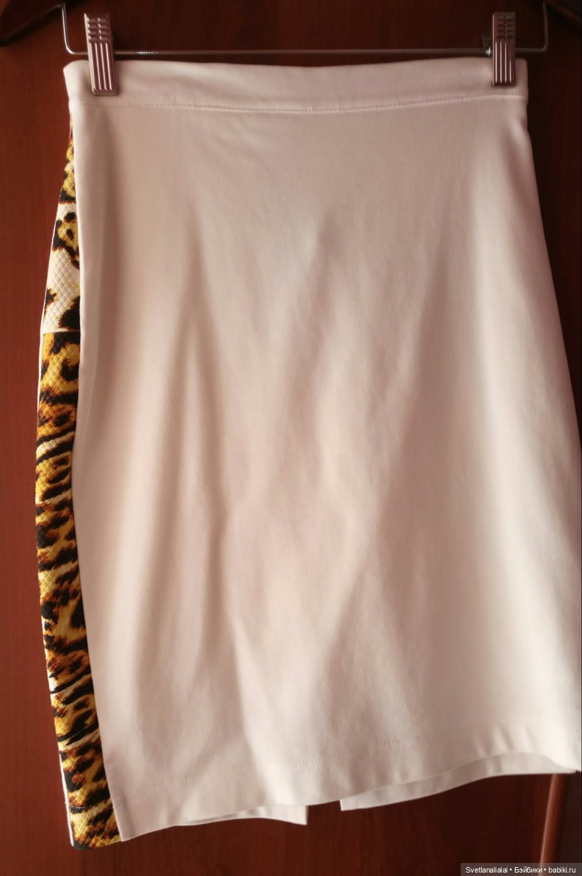 Купила костюм, а юбка в бедрах мала, да не просто мала, а вообще не лезет… Внизу у неё была лепердовая полоса ни туда ни сюда… И я приняла решение вставить её в бока и вуаля! Юбка стала любимой. Девочки только не спрашиваете меня почему я выбрала эту экстравагантную расцветку, даже спустя 5 лет я не могу себе ответить))))):!!!