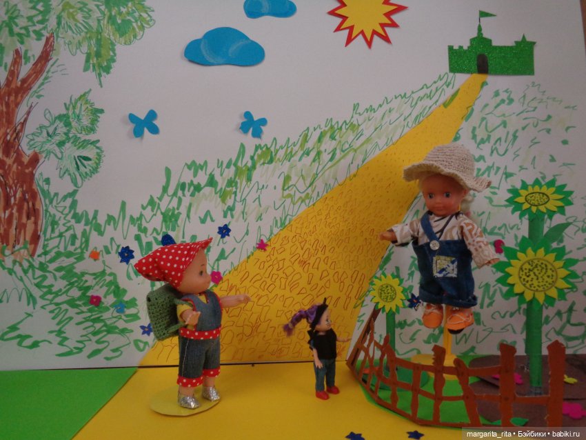 Элли внимательно разглядывала смешное, разрисованное лицо чучела и удивилась, что оно вдруг подмигнуло ей правым глазом…