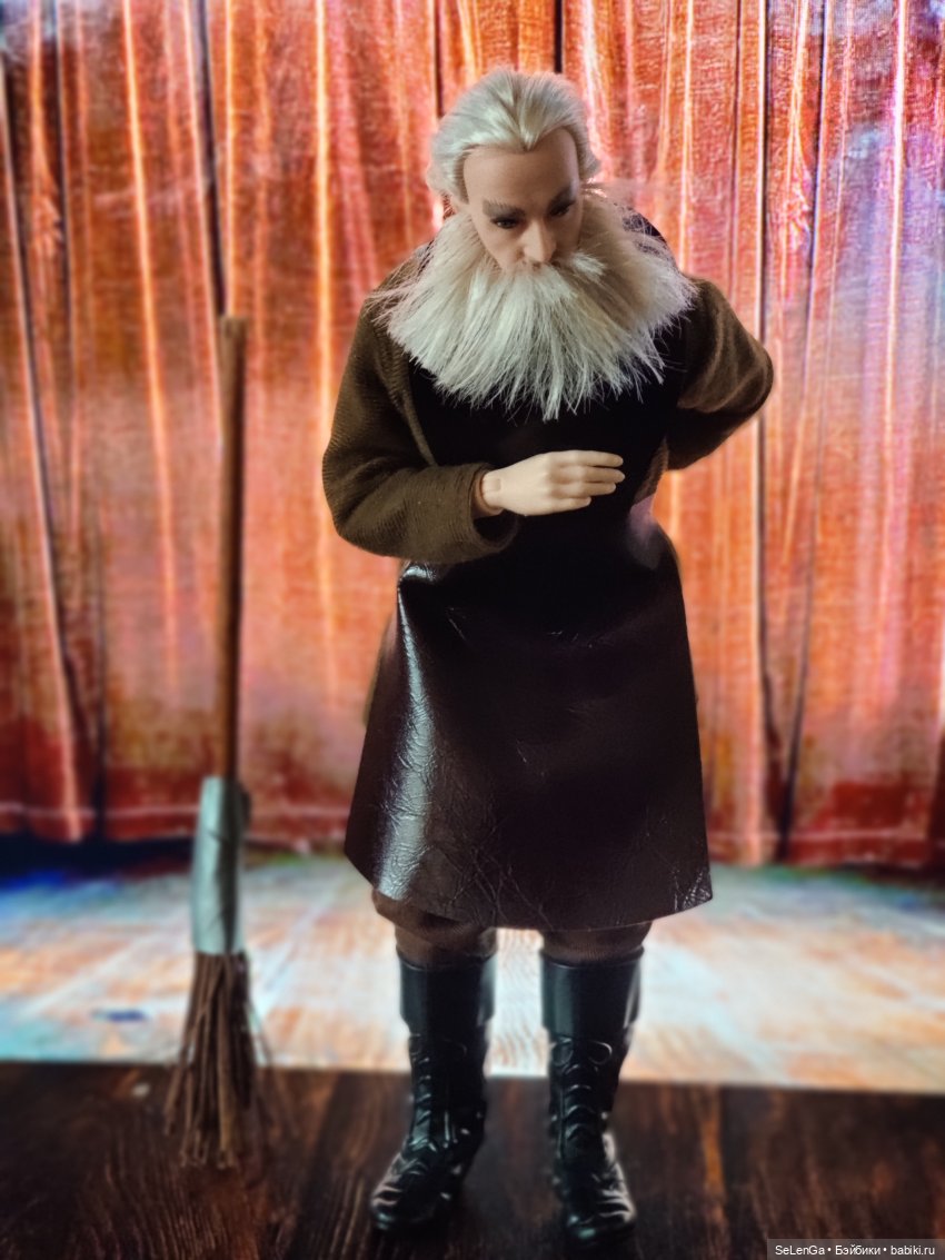 (на самом деле наклеила губы из запекаемой глины — но это кошмарище, хорошо что под бородой не видно))) (у Хагрида, кстати еще хуже история — у Дамблдора потенциально рот вырезается с усами, а у Хагрида — вообще одни губы! видела в инсте, заделывали «колею» от бороды силиконом и на силикон прикрепляли рот от другого кена — нормальный рот от донора. но это пока не мой уровень!)