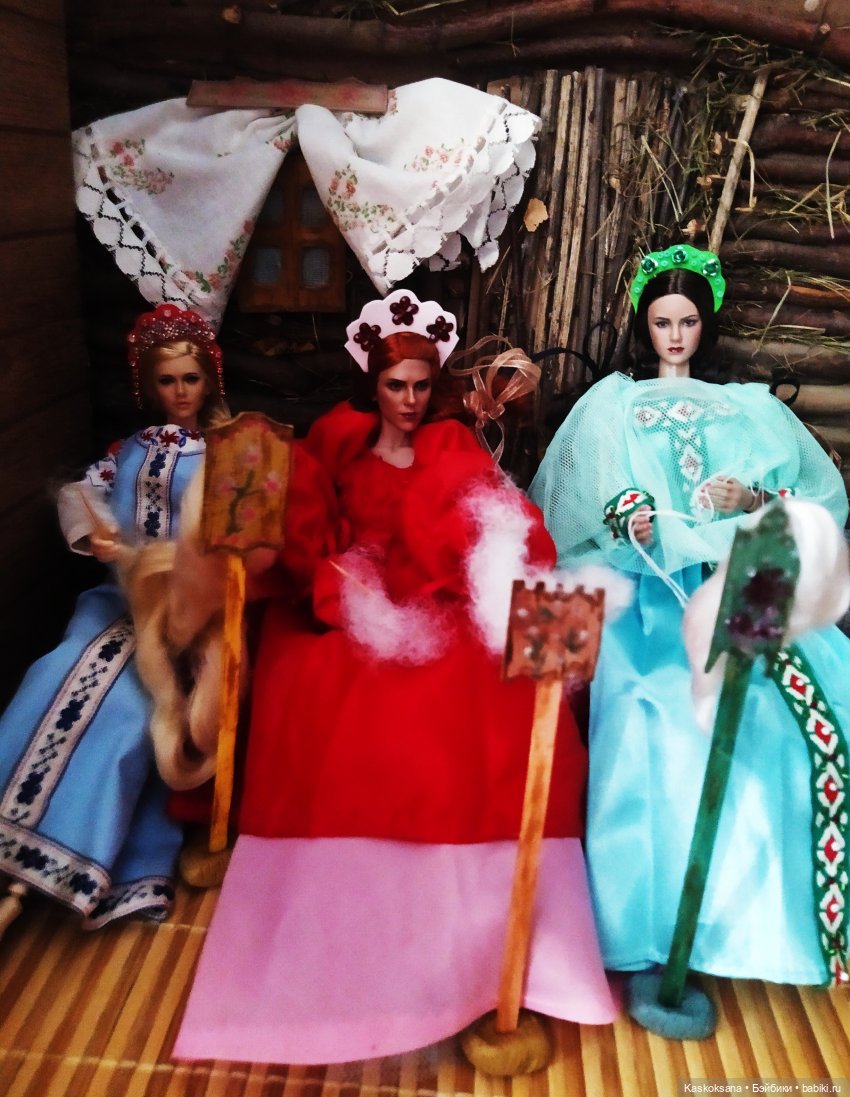 пс: а еще у меня шок контент. Всю жизнь до сегодняшнего дня я представляла, что три девицы сидят! на улице! под окошком. И мне не резало ничего, что вечерком в темноте и ткут при этом — вот жеж детский паттерн!