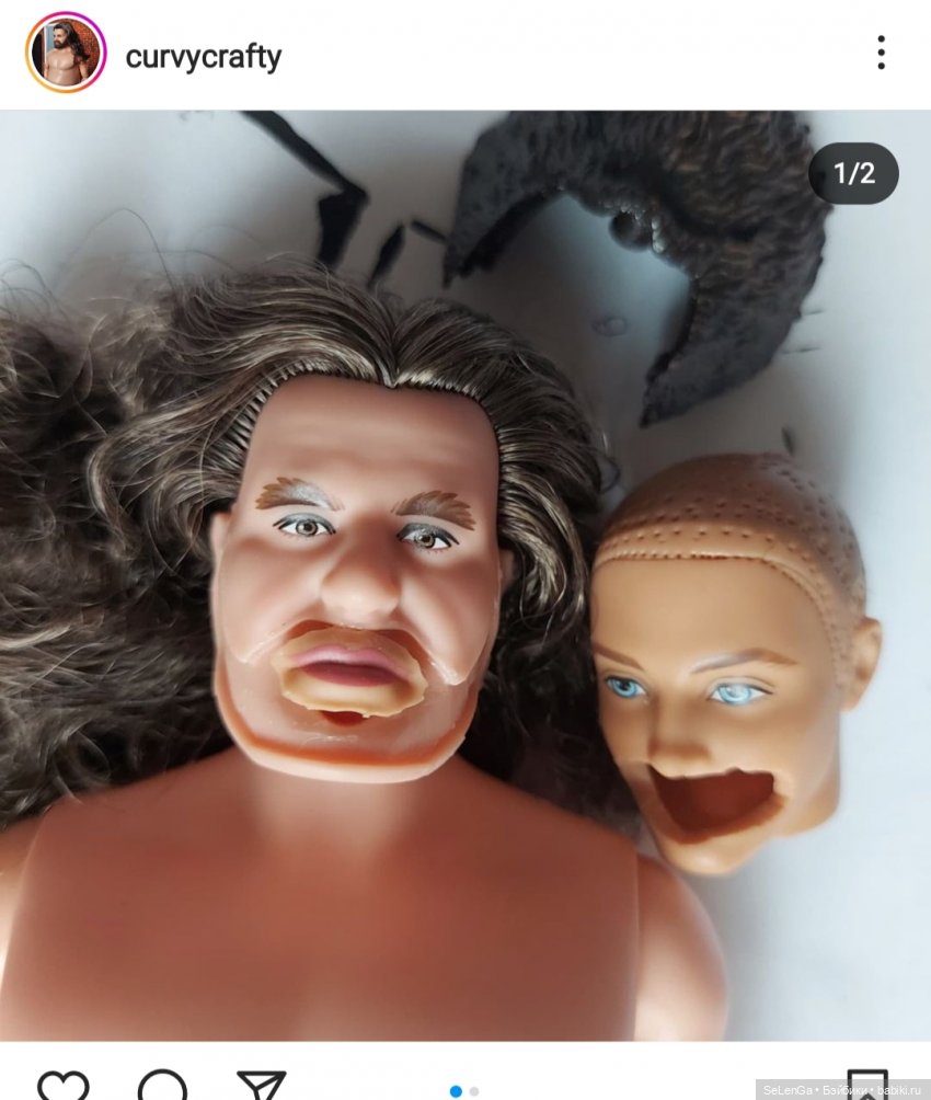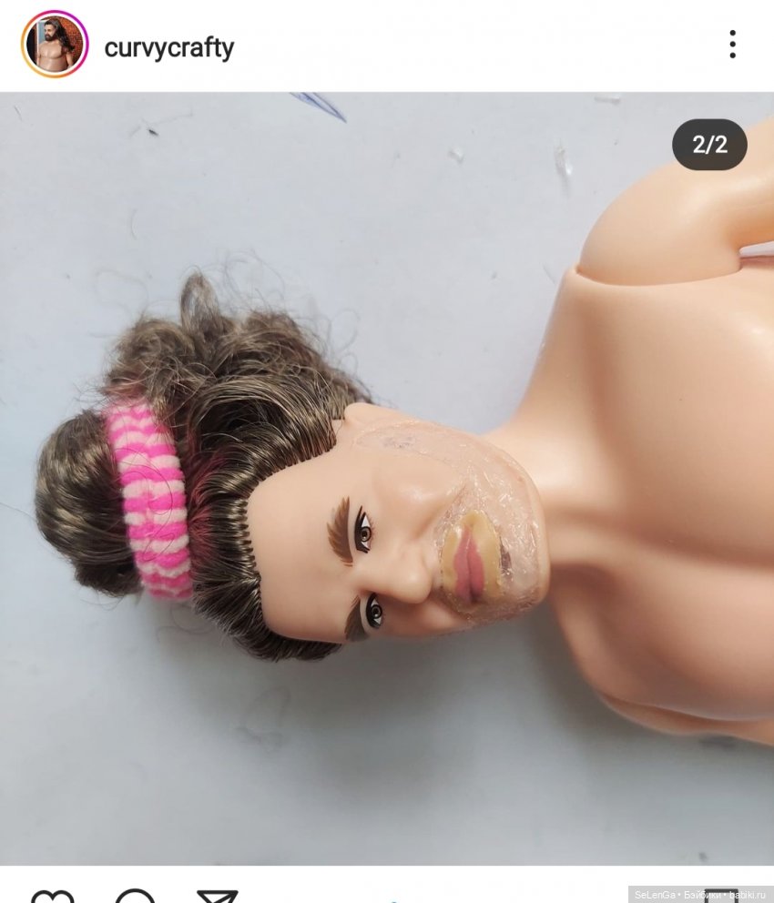 Для усов пригодился обрезочек черной нити для вязания. Тело взяли у шарнирного парня Маркертойс (крепление шеи совпадает с головами Маттел старого образца, за наводочку на парня благодарю Лену zaborea )