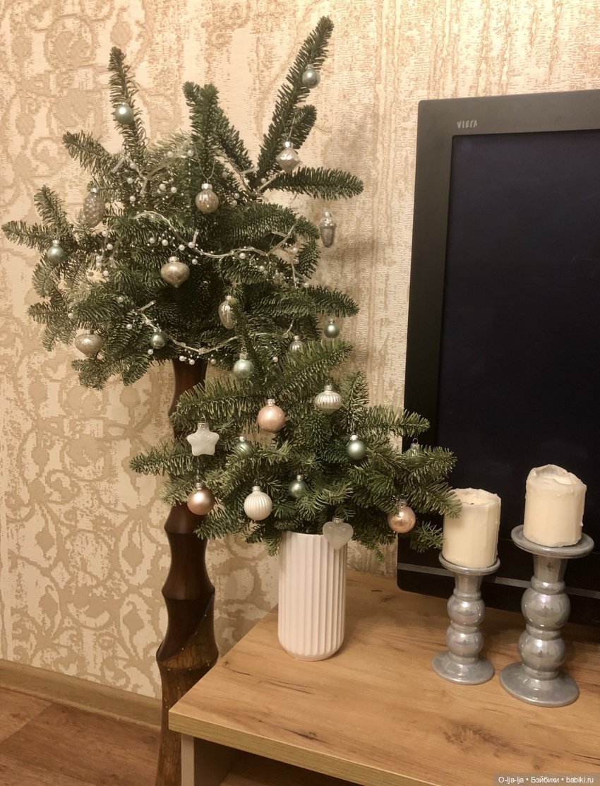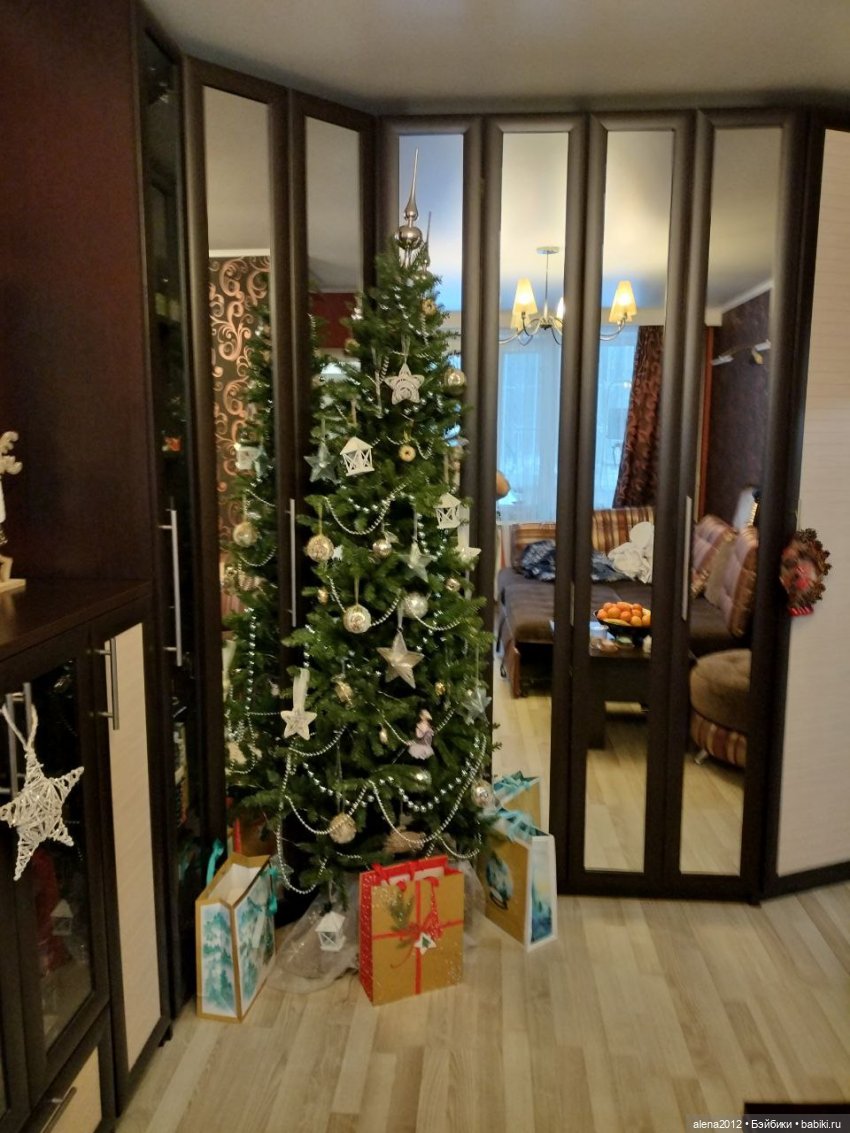 Я тааак долго искала елку, чтоб уместилась… не знала, что такие бывают… У нас дома тоже ограниченное пространство. Кое-как в прошлом году нашла подходящую елочку по высоте и ширине (и чтоб на высокой ножке была, т.к. дома животные ) и втиснула в отведенный ей уголок:
