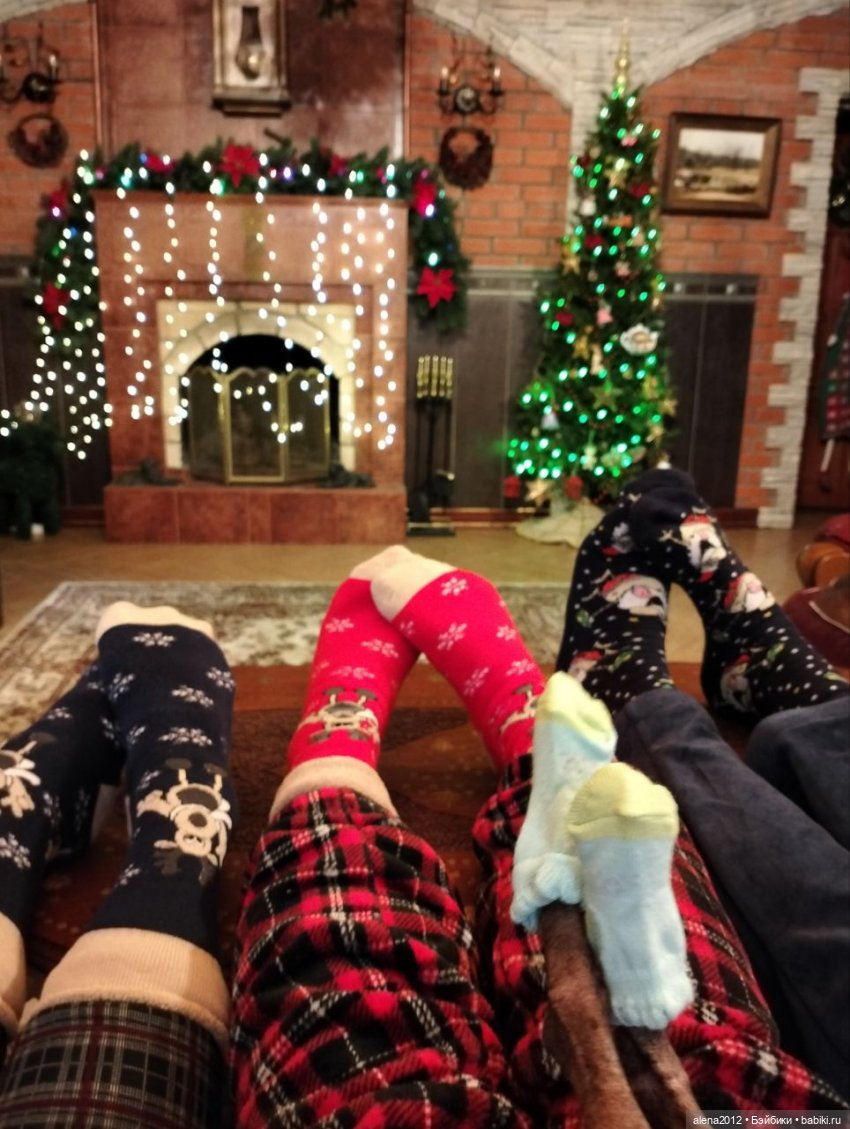 У меня несколько пар носочков вязаных и варежек вешаются на ёлку в русском стиле.