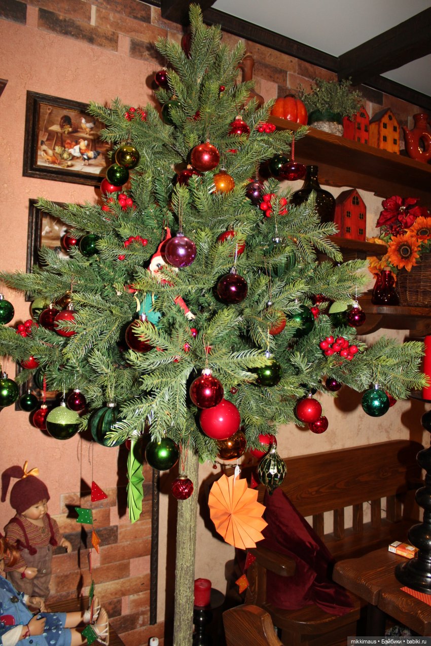 Я мечтала о елке макушкой вниз, той, что вешается на потолок, но увы, места и для неё нет. А полуелку маленькая у меня уже была. И я искала большую.