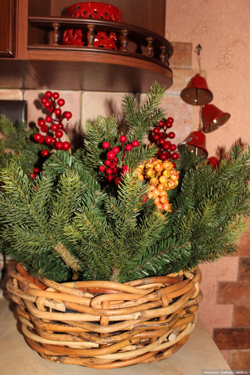 Живые ветки я уже убрала. А вот ёлку убираем по настроению.