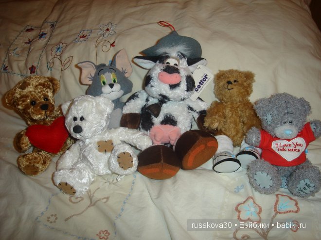 Моя плюшевая компашка в гости. В левом углу найдёна, 2 маленьких из секонда, на 4 лапах старенький мой, в жёлтом из магазина Тедди, там, где их наполняют и одеть можно и даже желание загадать. Ну и в безрукавке из Волгограда приехал вместе с Сашком кажется. Ну точно с кем то из характерных.