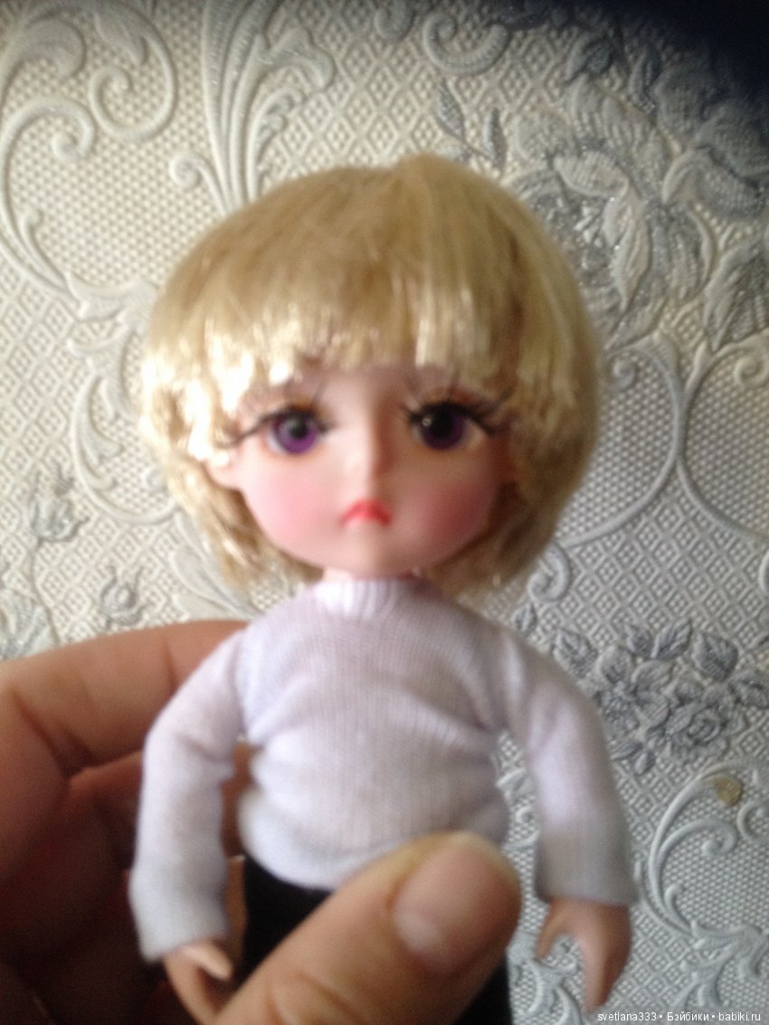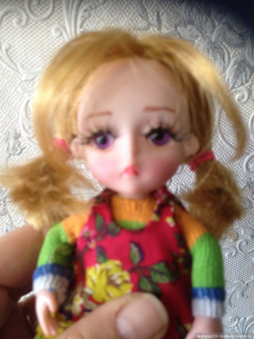 Дальше покажу, что у меня в итоге получилось. Аришке перепрошивала волосики, а Мишеньке сделала паричек побоялась что не смогу сделать как задумала. губки ядовитые стерла, бровки нарисовала и реснички наклеила. За качество фотографий прошу сразу прощение Я не профессионал, да и освещение подводит как бы не мудрила…