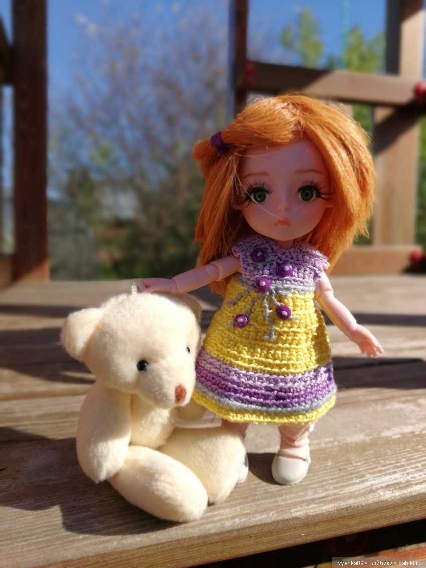 Всем доброго дня! А у нас обновочки!(для шарнирных кукол-брелочков Baboliy) Получились весёленькие летние комплекты кукольной одежды и сарафанчик. Кнопка спешит покрасоваться, приходите в гости со своими девчульками…