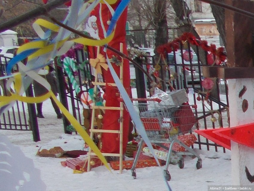 Последние кадры новогоднего Красноярска… Хотя, города сегодня не будет, а будет всего лишь один забор… Забор школы в Центральном районе, а куклы вставлены фотошопом