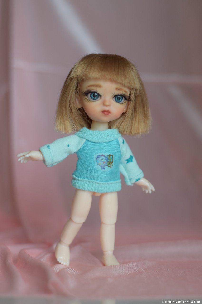 Общее впечатление: куколки мне понравились. Тело такое же, как у Баболи, но без дырочки. Оттенок не такой розовый, более светлый. Размер 15.5 см — очень удобный и приятный. Размер головы более сарозмерный телу, чем был у Баболи. Ну и конечно мордашки и мейк куда симпатичнее.