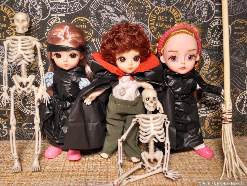 Я тоже насмотрелась на здешних малышей и поселила себе троицу) сегодня они отмечают Хеллоуин у Эла в кафе, поэтому при параде)
