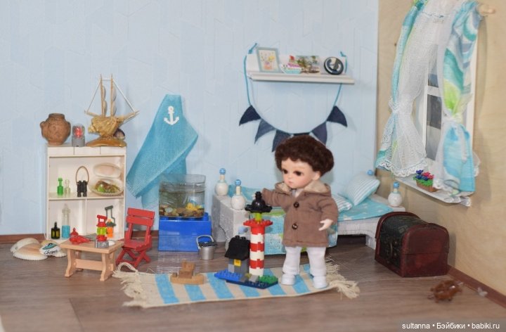 Очень люблю морскую тему. Сейчас на своей полке планирую временно сделать морскую тему. Уже плед с подушками связала. Сувениров наделала)