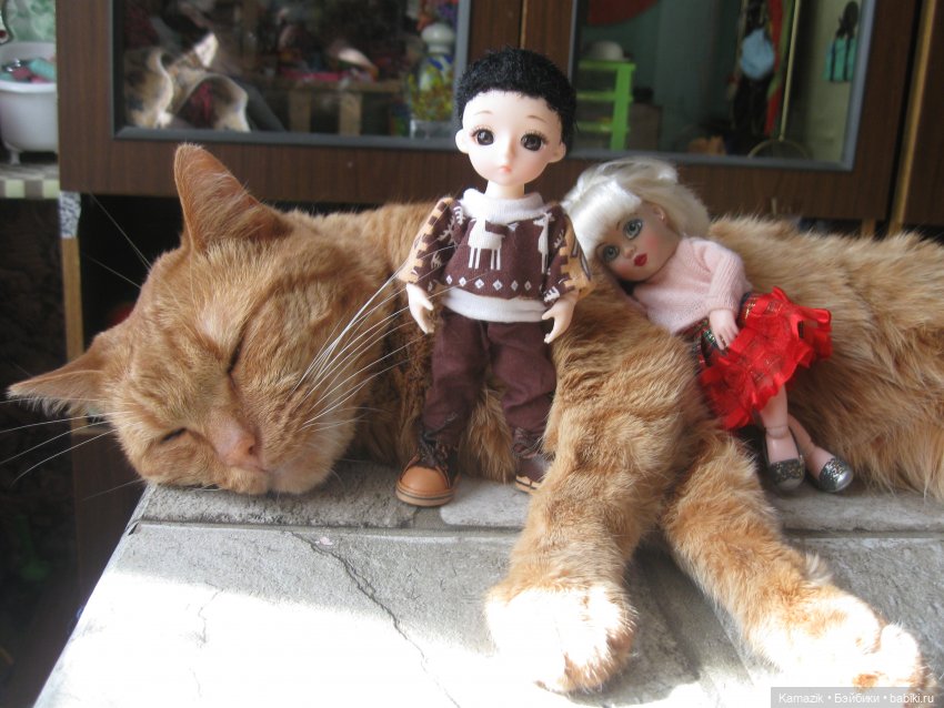 Яська, привет! А мы тут под большим рыжим боком греемся. Ну, меня то ты уже знаешь, а это мой новый друг Филимон. Только вчера поселился. Вчера был ещё в таком виде и без имени.