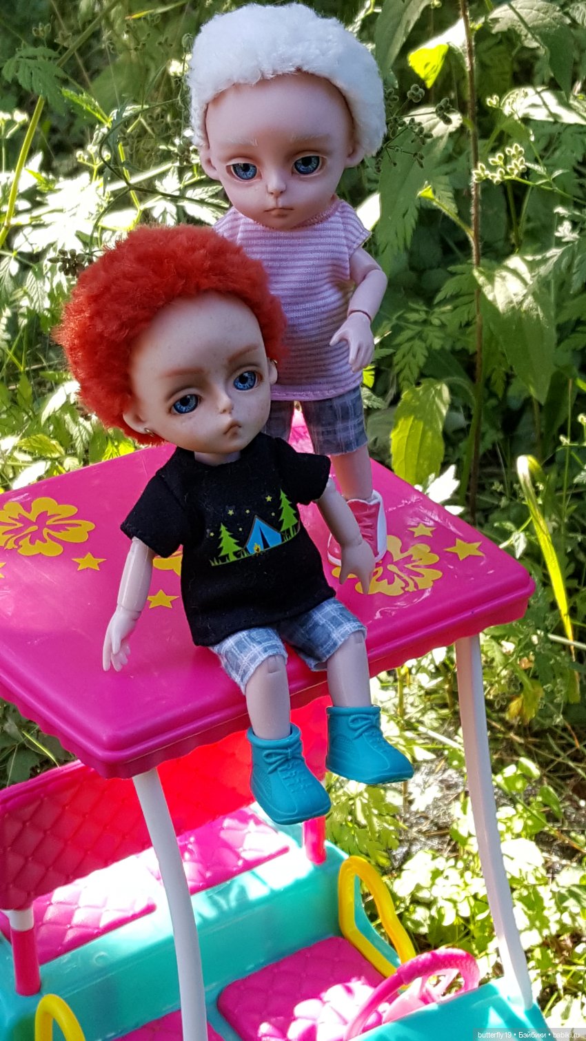 Всем привет! К Анютке приехала сестренка Аленка( мне ее прислали за брак — у Анюты две стопы были левые)! Аленка отличается от Анютки — тело у нее без наклонной головы! Все равно мне она очень нравится — воробушек такой растрепанный! Скоро еще приедет одна такая куклена — с голубыми глазками! Обожаю этих малышек! Дальше фото — девчонки ходили гулять! Приходите в гости — очень всем рады!