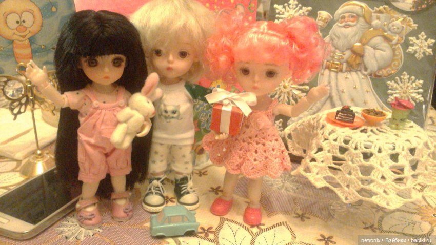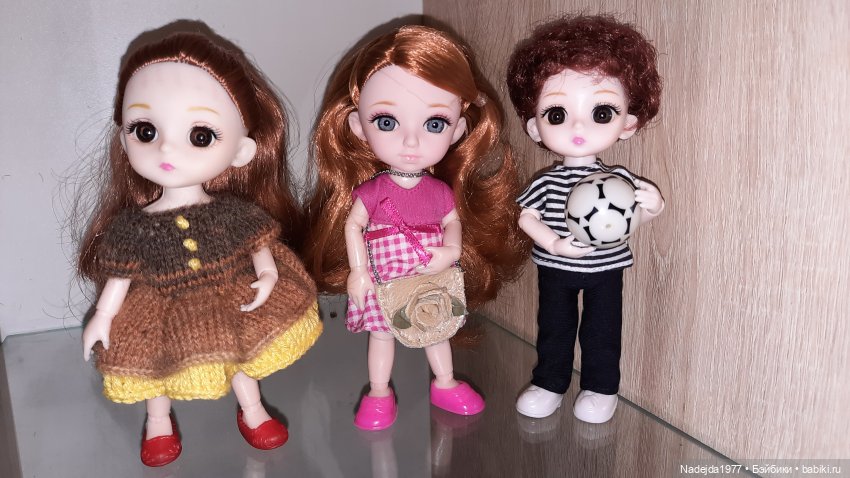 Вообще, обе куколки совершенно спокойно могут стать как девочками, так и мальчиками — мальчики тоже нередко бывают очень миловидными и хорошенькими!) И тогда у Вашей улыбашечки, аж, сразу два ухажёра!)) Я бы на её месте растерялась, кого выбрать любимчиком!...:))) А потом, глядишь, и ещё какая девчоночка приедет и будет две пары друзей!) Просто мальчиков труднее найти, их гораздо меньше… Я тоже своих пацанчиков ни сразу отыскала..., некоторых совершенно случайно… Вот Бориска мой приехал лысеньким..., стала парички, какие были, примерять..., и вдруг выяснилось, что это славный мальчуган, а вовсе и не девочка...))