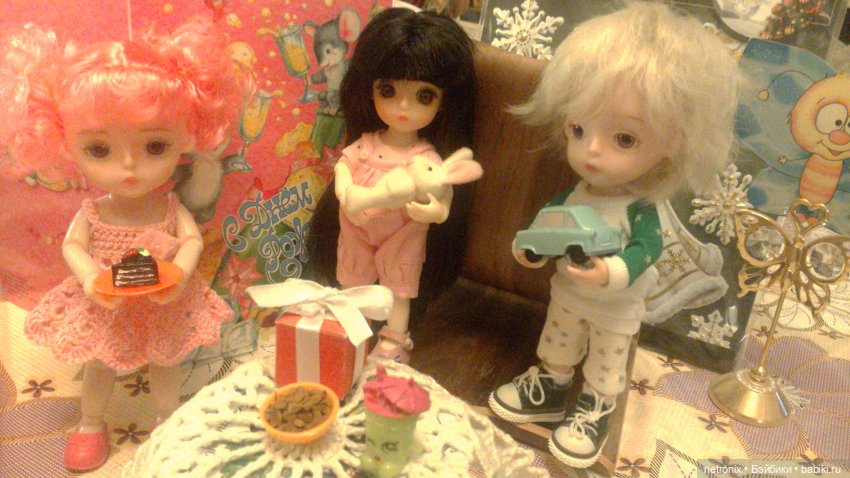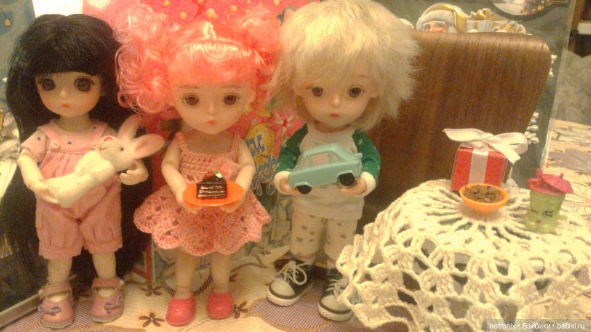 Бориска в белом паричке, в центре...) Получились близняшки — братик и сестричка, Розочка и Бориска.))