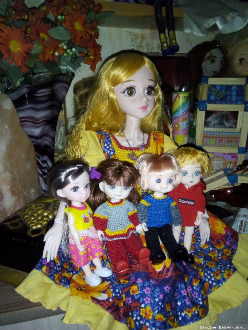 Феечка-недотрога в родном платье, с родной причёской и клеймом «Baboliy» на теле и спине) Маме она нравится и так, хотя я б хоть парик сделала бы) И вторая — улыбашка с чёлкой)