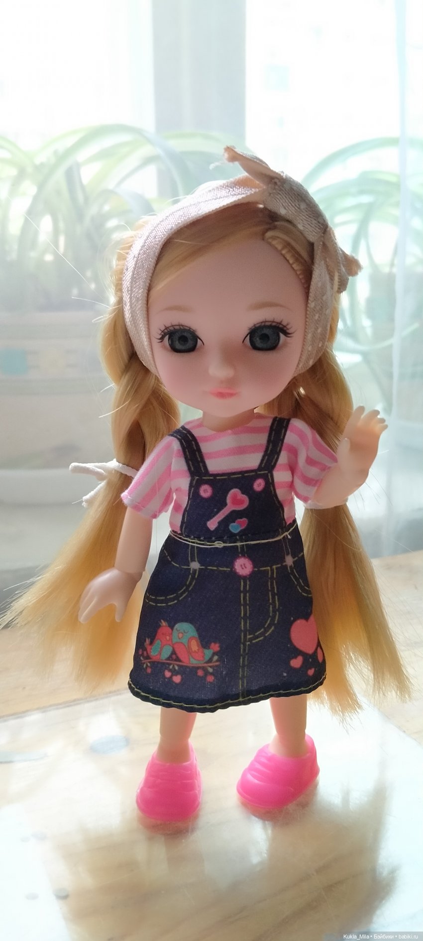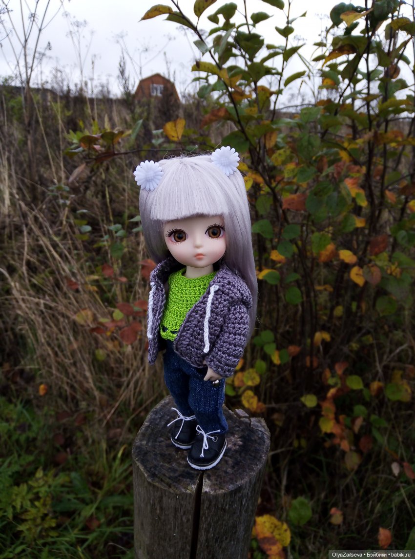 Росточка в ней 16 см, большеглазая и большеголовая, симпатичная, как и предполагалось с небогатыми, но длинными волосами, не очень понятного седосерого цвета. Чем-то напоминает Баболишек. В общем ушла со мной. Знакомьтесь и приводите Ваших девчонок и мальчишек в гости, а может быть у кого-нибудь живет и такая же куколка?)